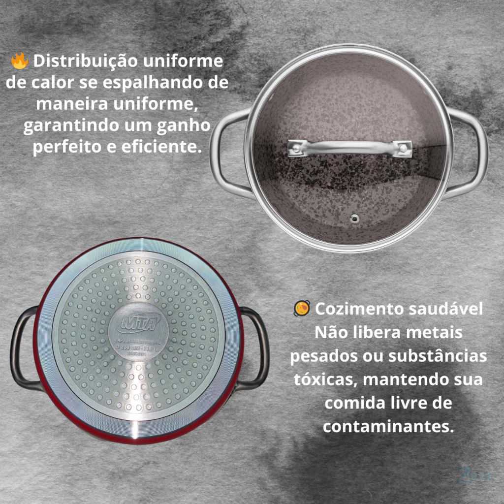 A tecnologia SuperFlon de antiaderentes de alto desempenho é exclusivo mta. Seu revestimento em Granito proporciona uma resistência 10 vezes maior e uma alta durabilidade.