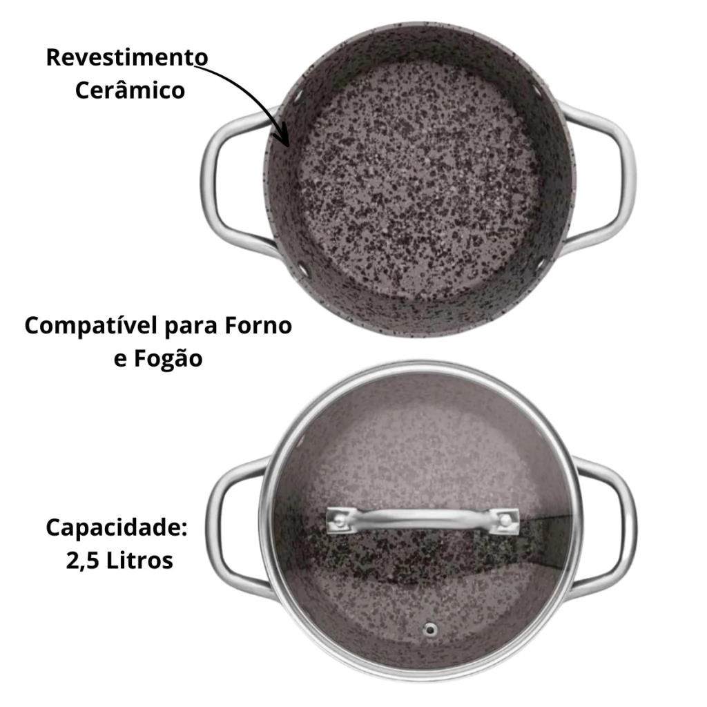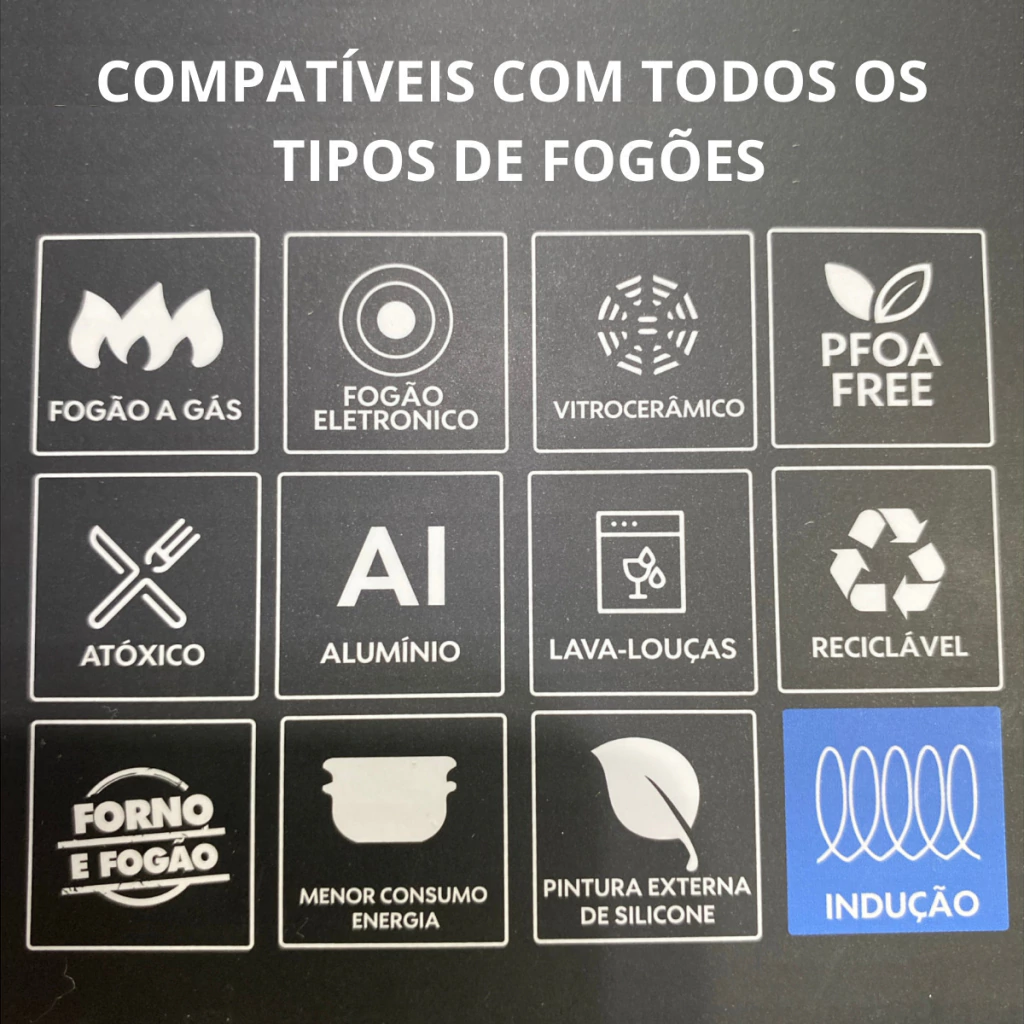 Além de ser compatível com todos os tipos de fogões ela também vai no forno, facilitando ainda mais qualquer tipo de preparo.