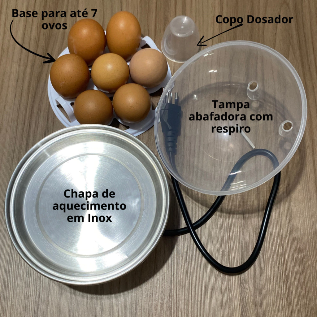 Este método evita que os ovos rachem durante o cozimento, diferentemente do que ocorre ao cozinhar em panela com água fervente. A luz do aparelho se apaga automaticamente quando a água se esgota, indicando que o cozimento está completo.